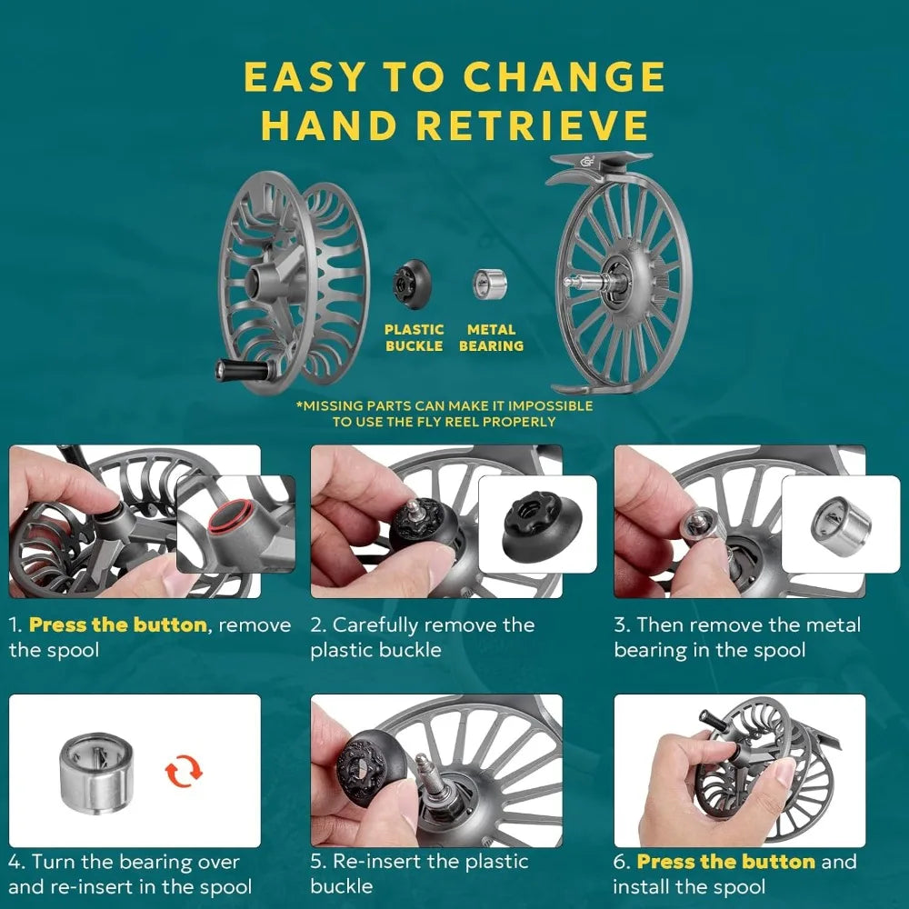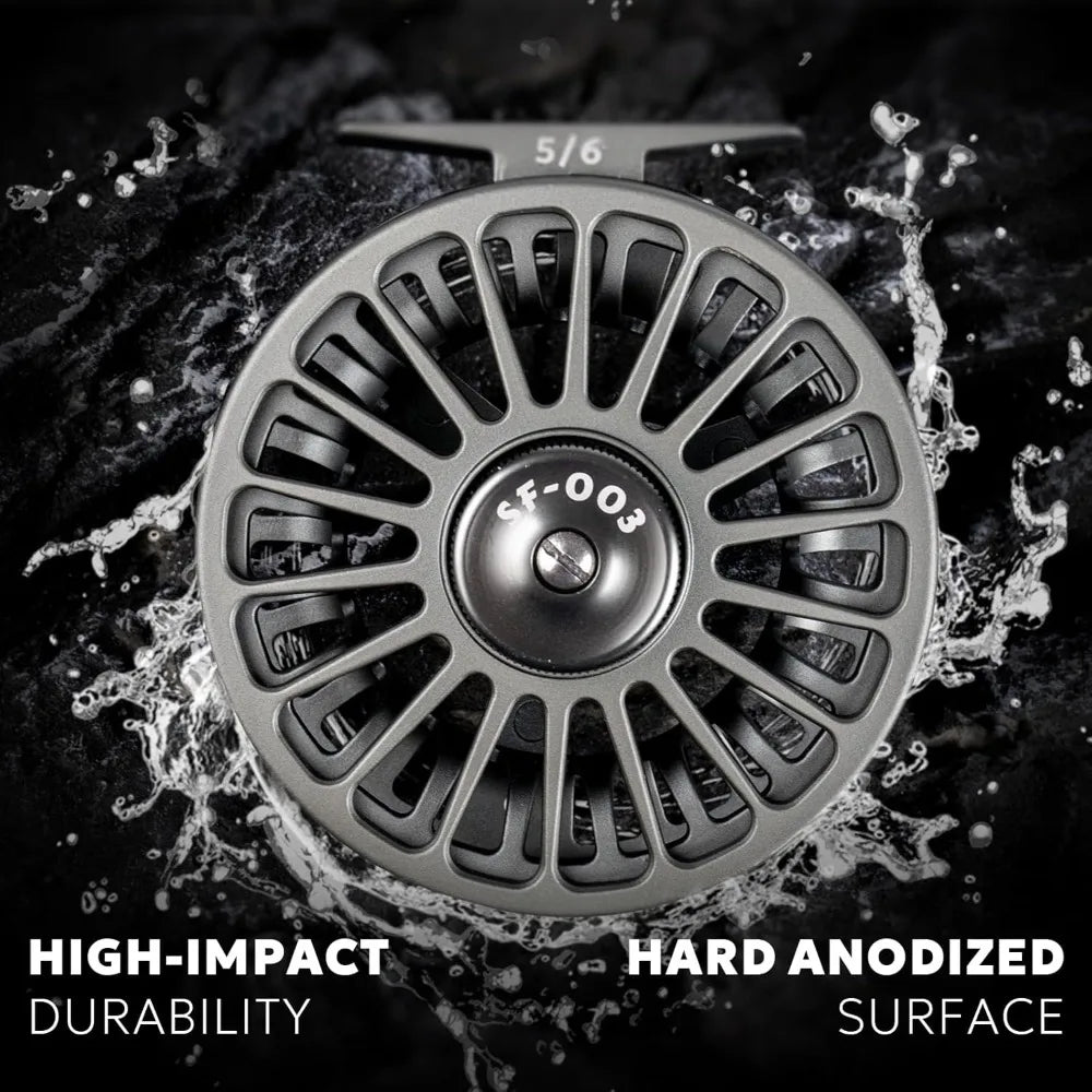 Good Durability: Crafted with High-grade aluminum that has been hard anodized for ultimate corrosion resistance, this fly reel is built to handle any climate and fishing condition. Its cold-forged and tempered structure gives it incredible strength.
