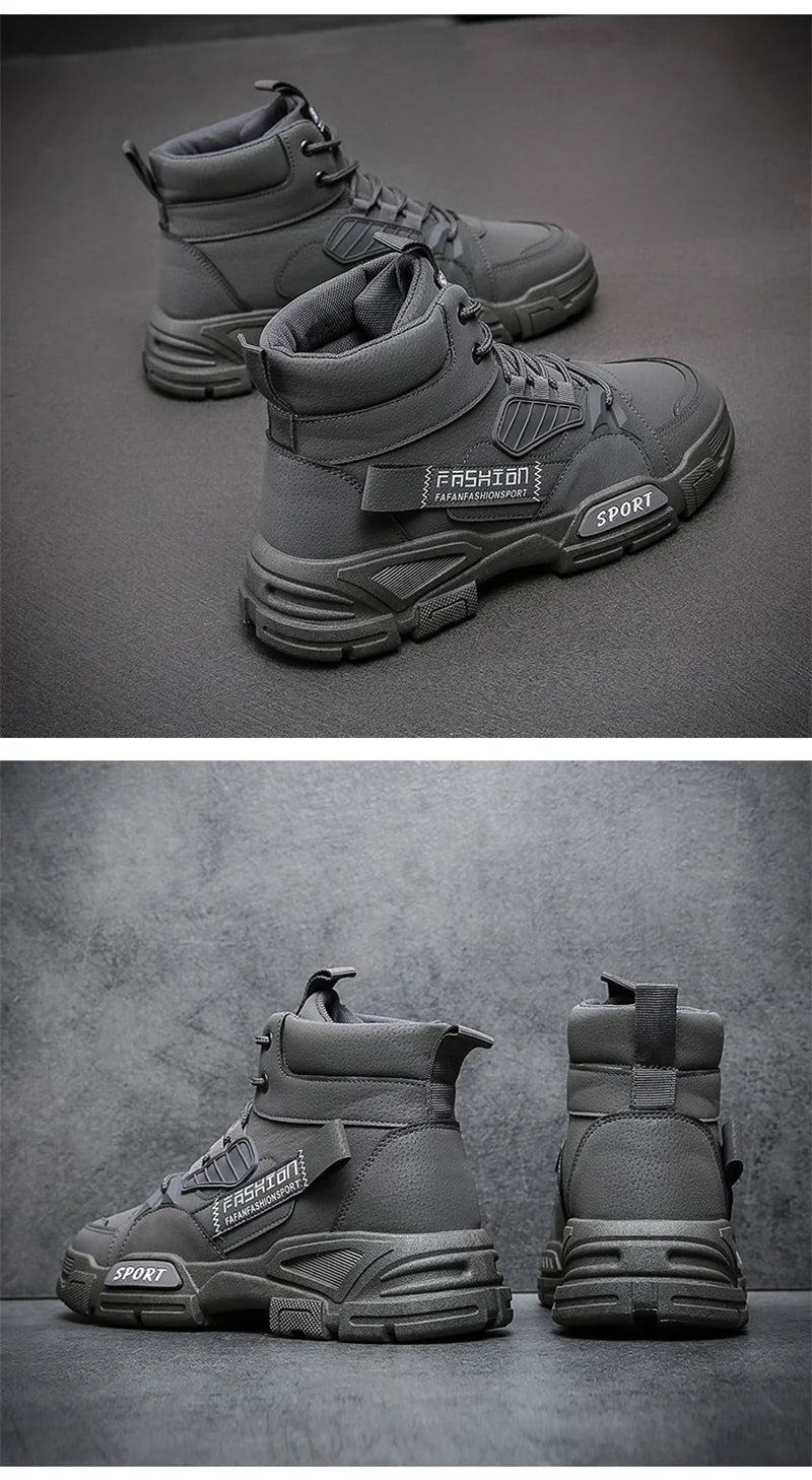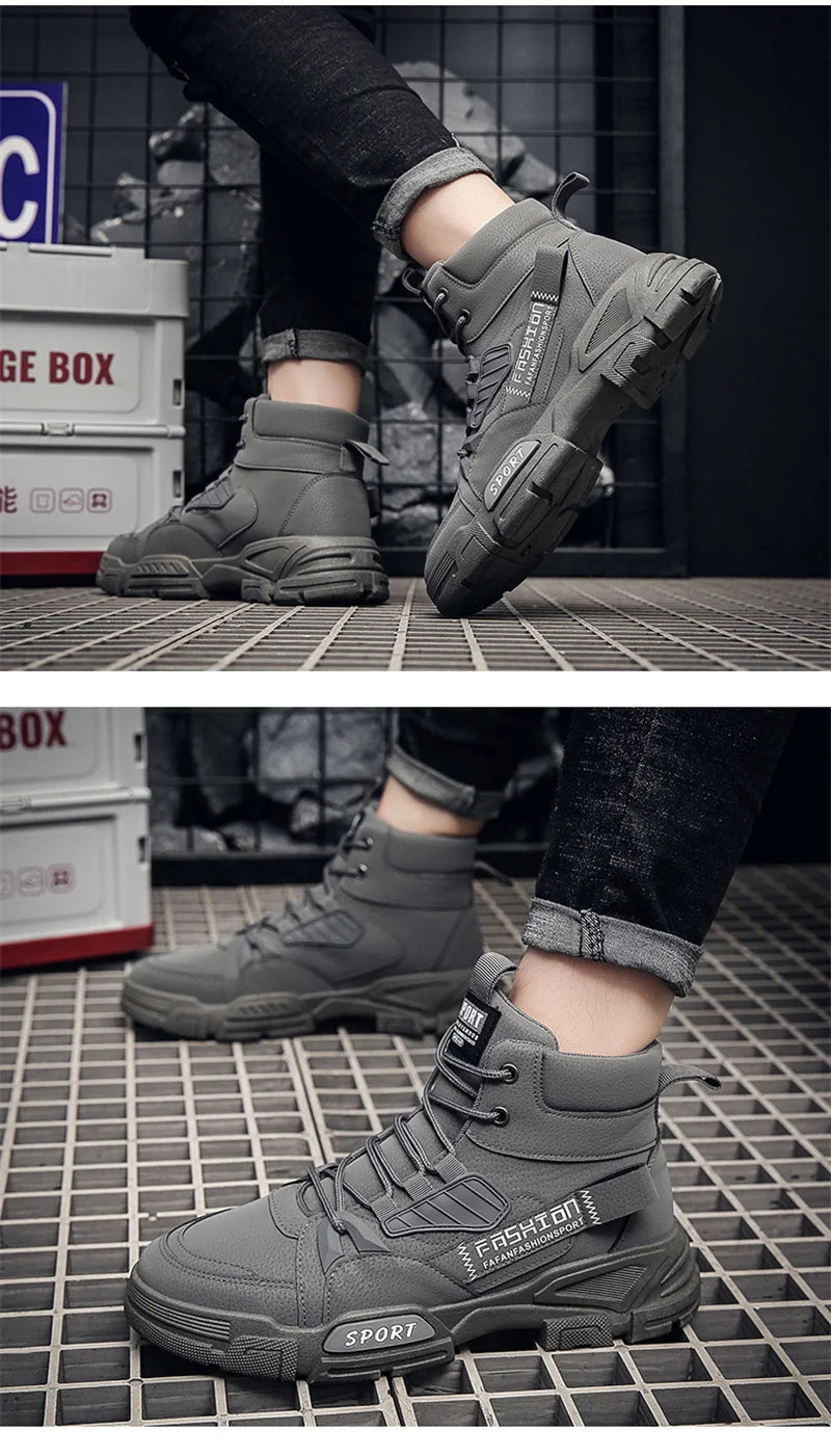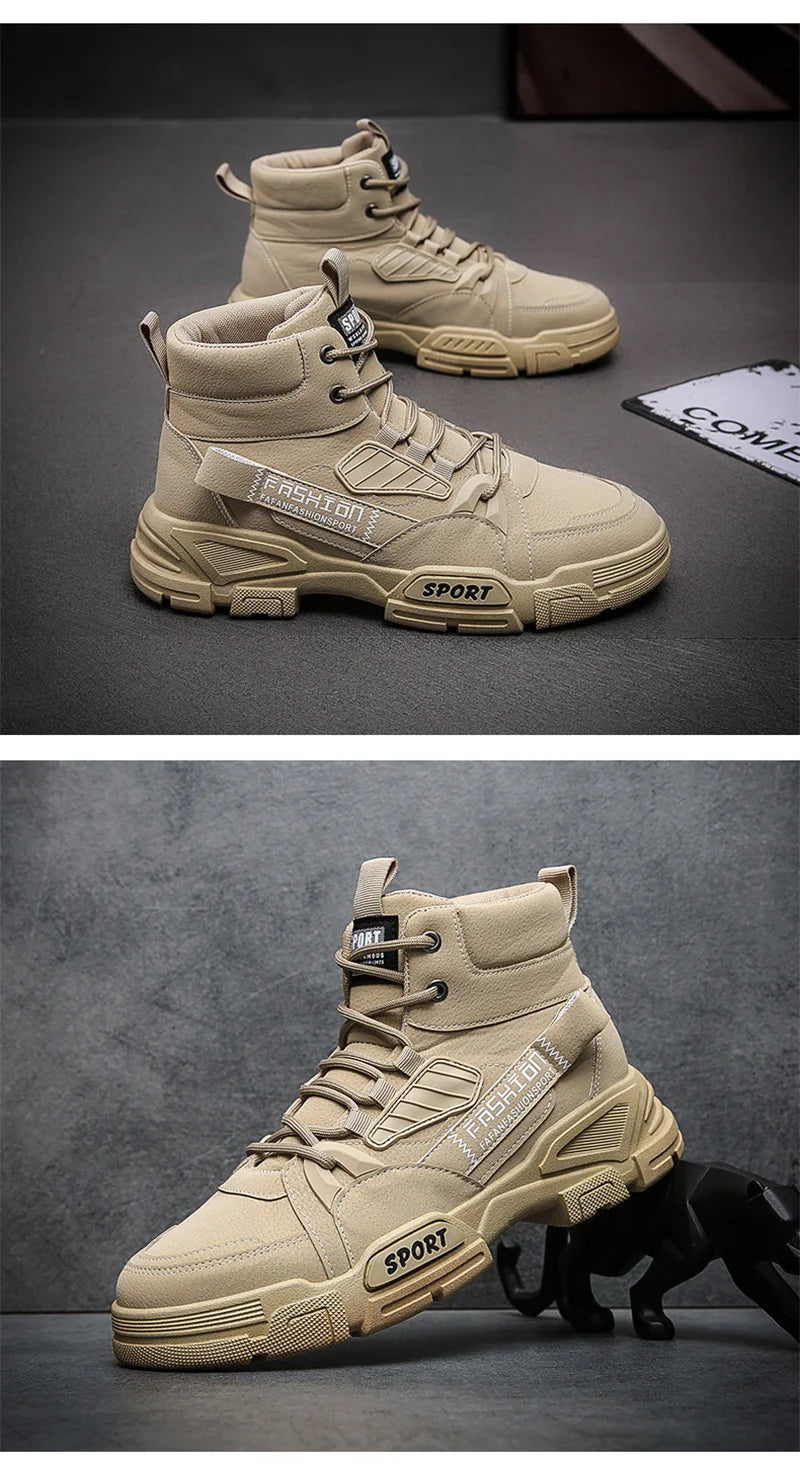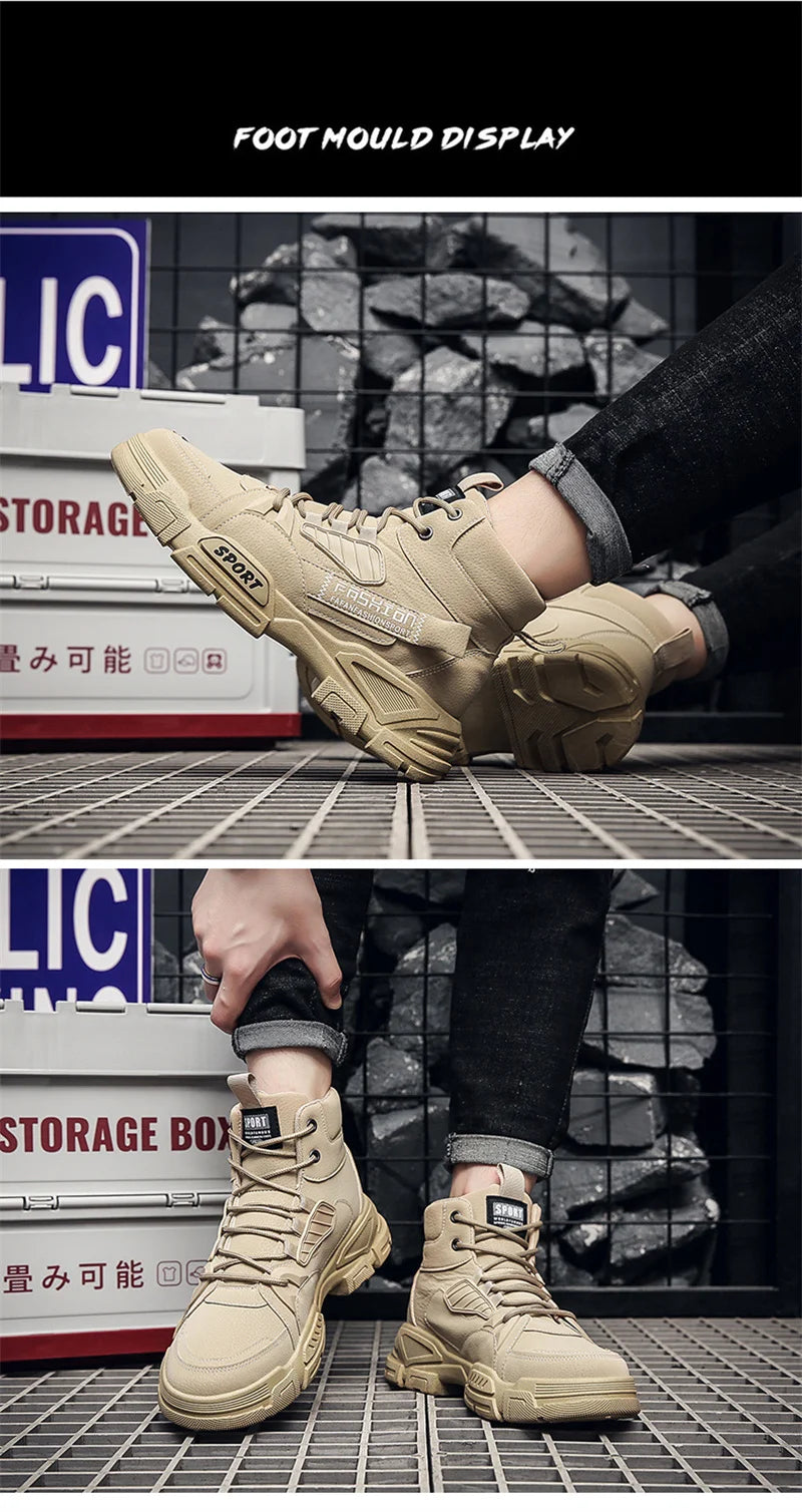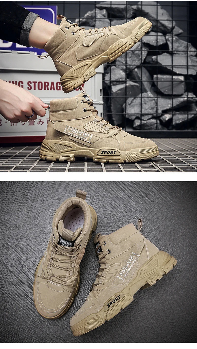 2024 Spring New Leisure Shoes for Men Outdoor Work Boots Trendy Fashion Leather Boots High Top