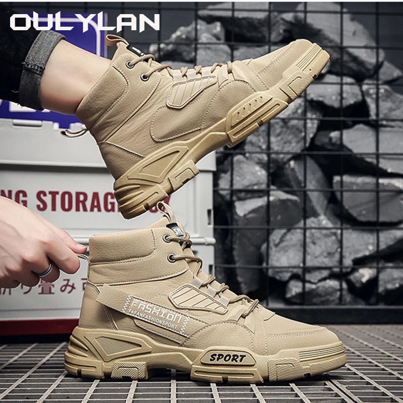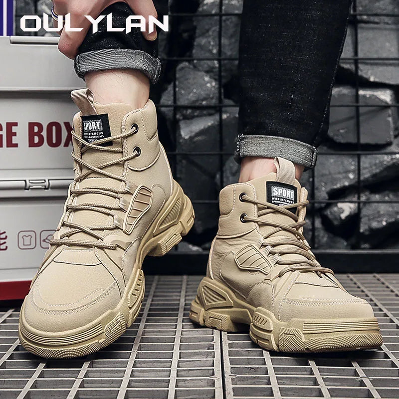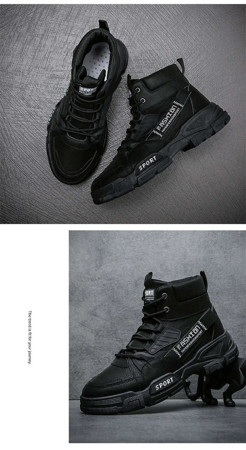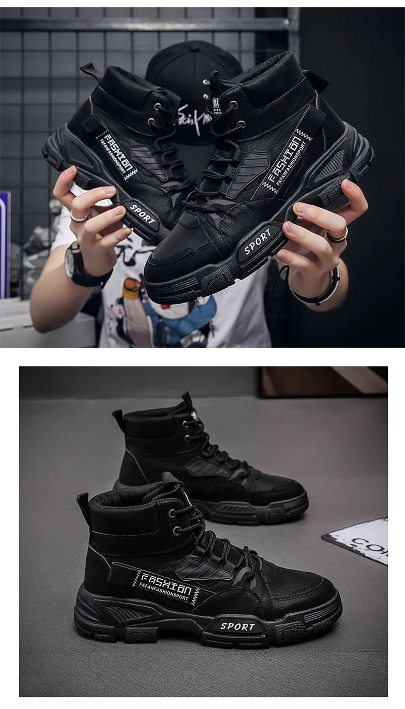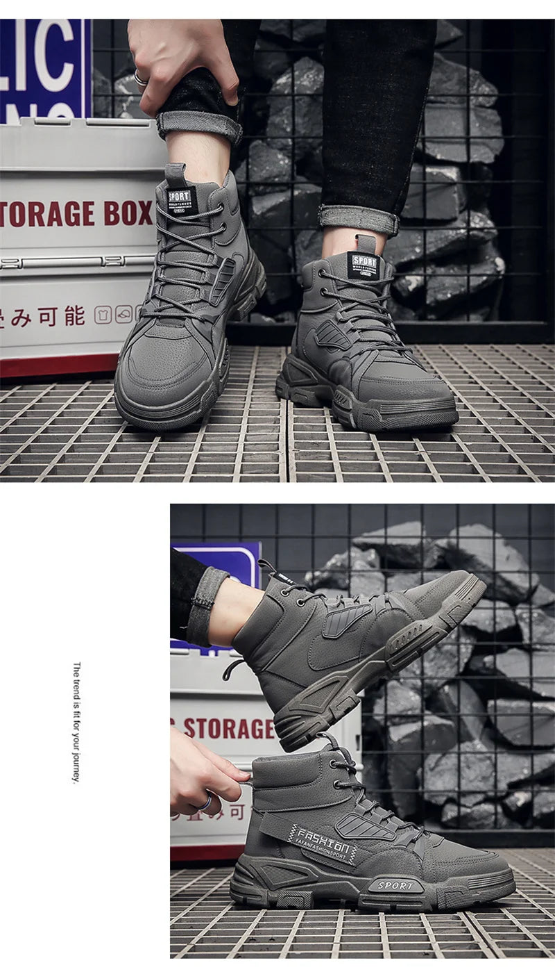 2024 Spring New Leisure Shoes for Men Outdoor Work Boots Trendy Fashion Leather Boots High Top