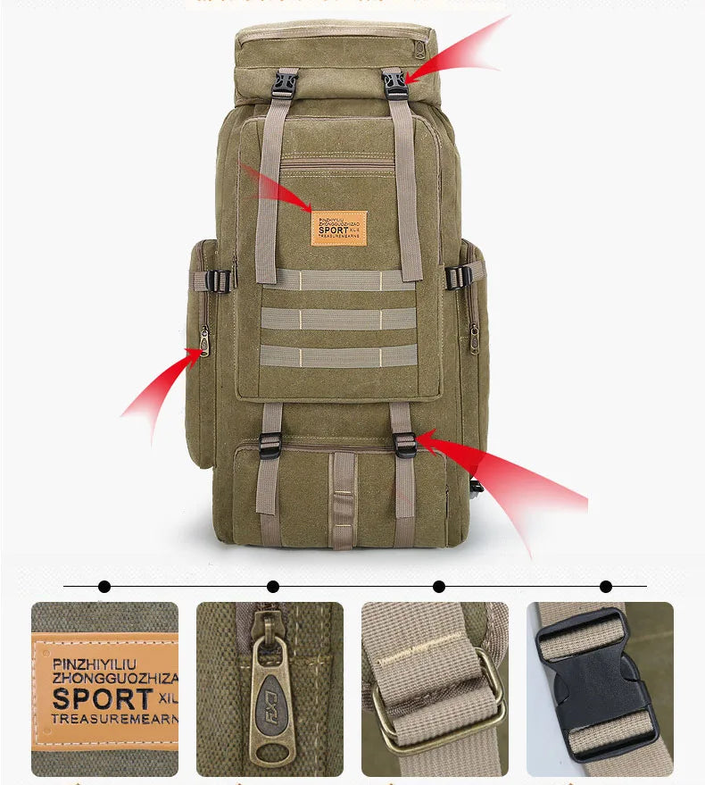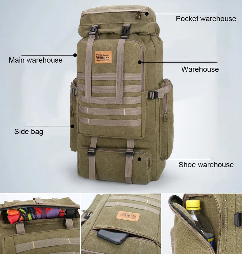 80L Backpack 600D Nylon Waterproof Trekking Hunting Bags Outdoor Rucksacks Outdoor Training Molle Knapsacks