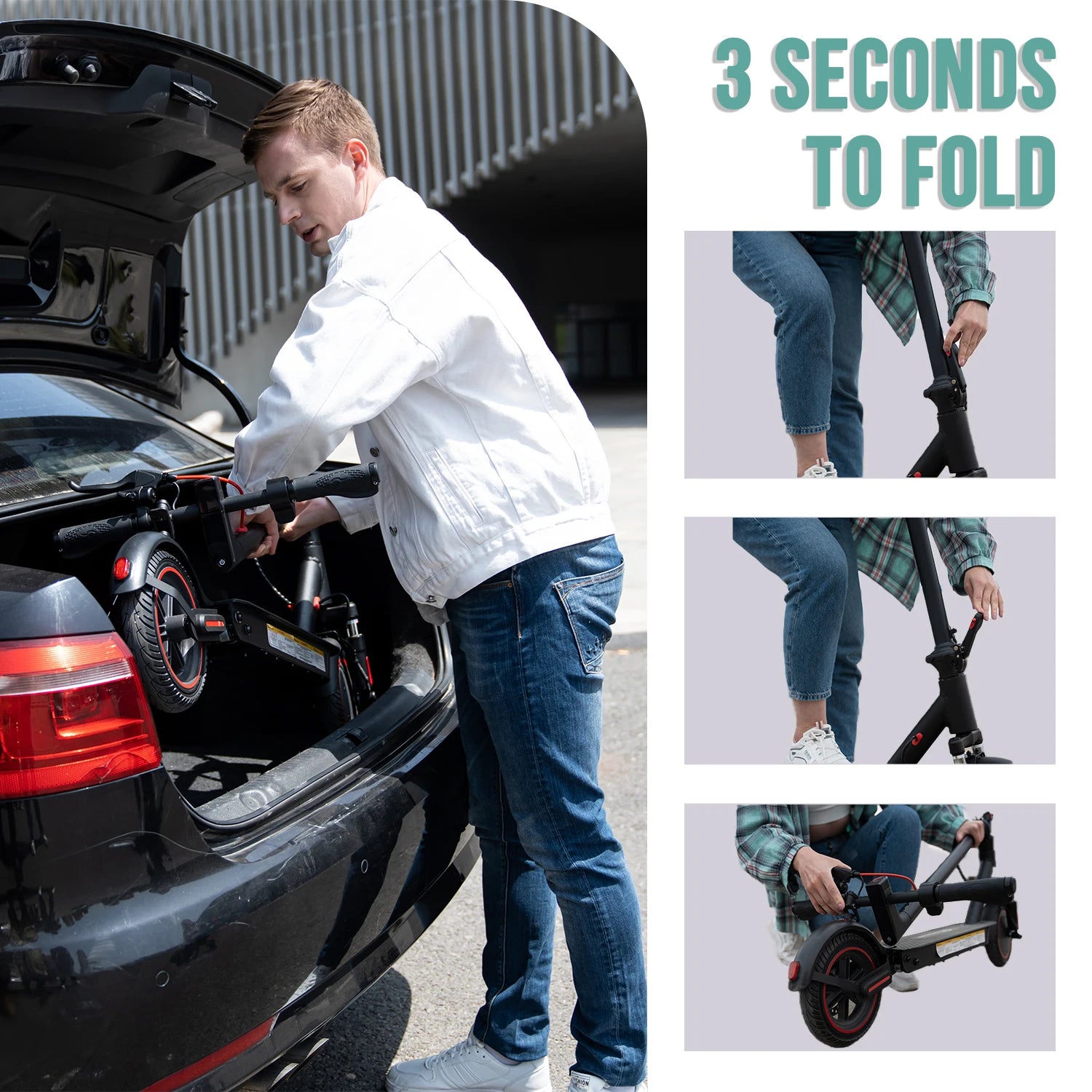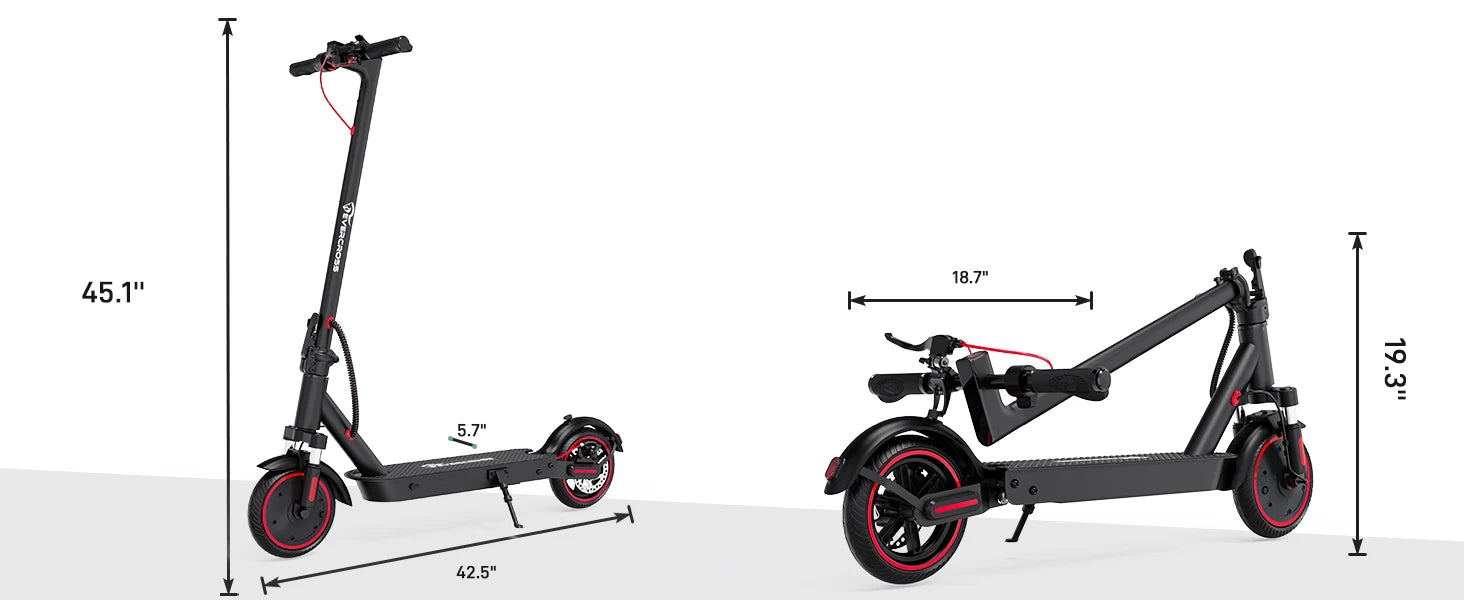 ★36V 7.8Ah INTELLIGENT BATTERY: The EV85F electric scooter's "36V 7.8Ah" high-quality smart battery management system has a maximum range of 15-19 miles, and it takes only 5-6 hours to fully charge. It also has safety features such as temperature abnormal protection, overcharge protection, and battery information digitization.