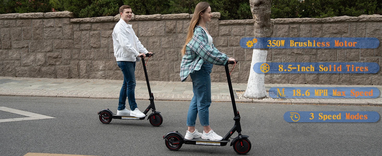 ★350W BRUSHLESS FRONT DRIVE MOTOR: The 350W motor of the EV85F can achieve three speed modes with adjustable speeds: ECO-7.5MPH, D-12.4MPH, S-18.6MPH, and the maximum climbing angle is 10-12°. This high-performance electric scooter is cost-effective and can meet the commuting needs of office workers or students riding on campus.