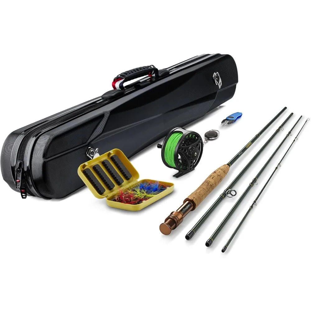 Fly Fishing Rod and Reel Combo Starter Kit, Fly Rod 4-Piece Carbon Fiber, Aluminum Fly Reel, 12Pcs Flies, Fishing Line