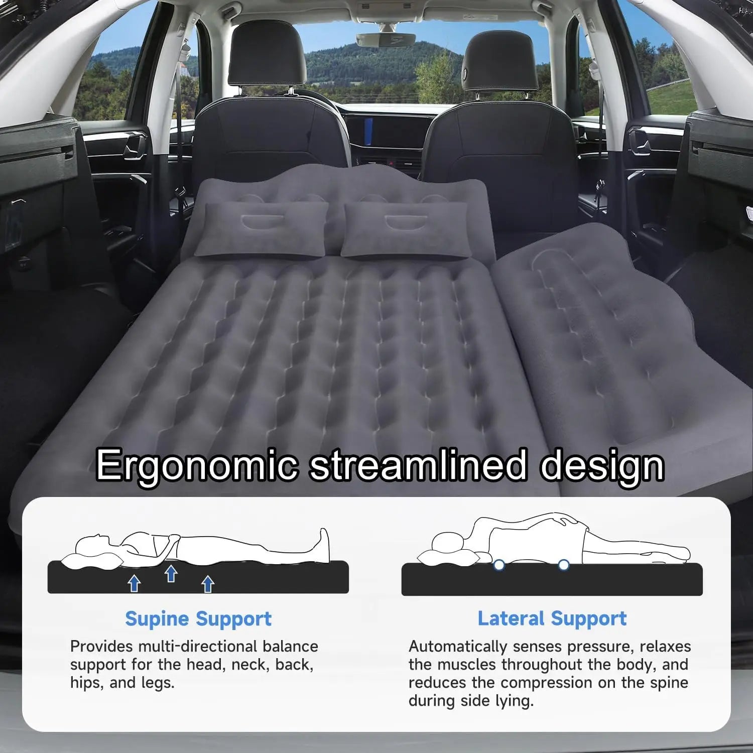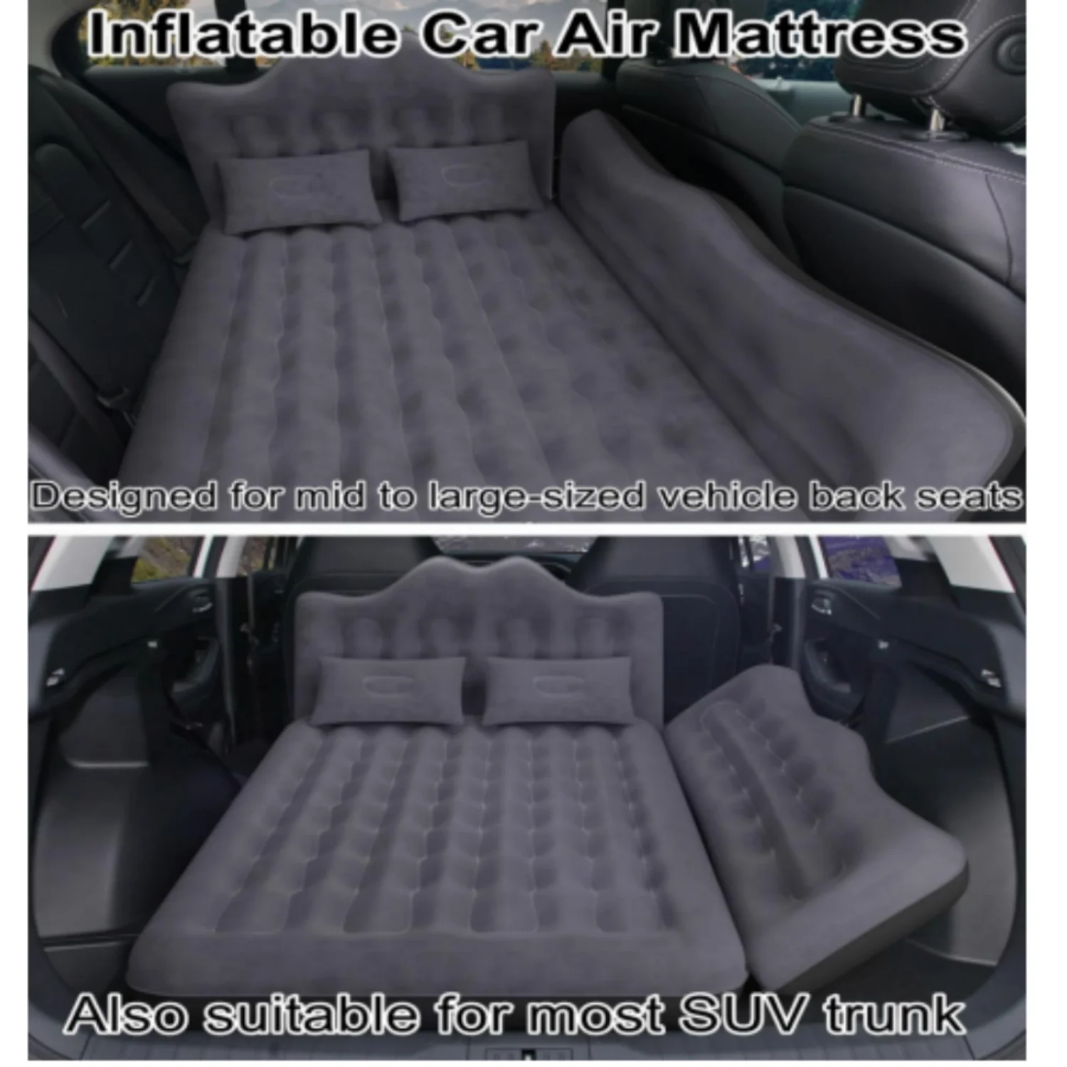 Inflatable Car Mattress Bed: SUV Camping Air Mattress with Pump & Pillows, Blow Up Car Sleeping Matt