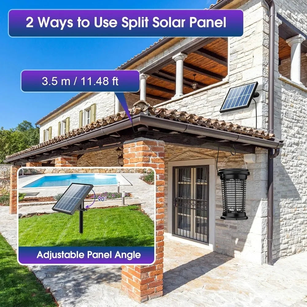 Suitable for Indoor and Outdoor: Mosquito zapper can trap a wide range of bugs such as Mosquitos, Aedes, Flies, Moths, Midges, Wasps and Gnats. As it effectively attracts insets using its high-intensity UV light and eliminates them quickly with its powerful electric grid. NOTE: Please do not charge the solar panel flat on the ground where the temperature is too high.