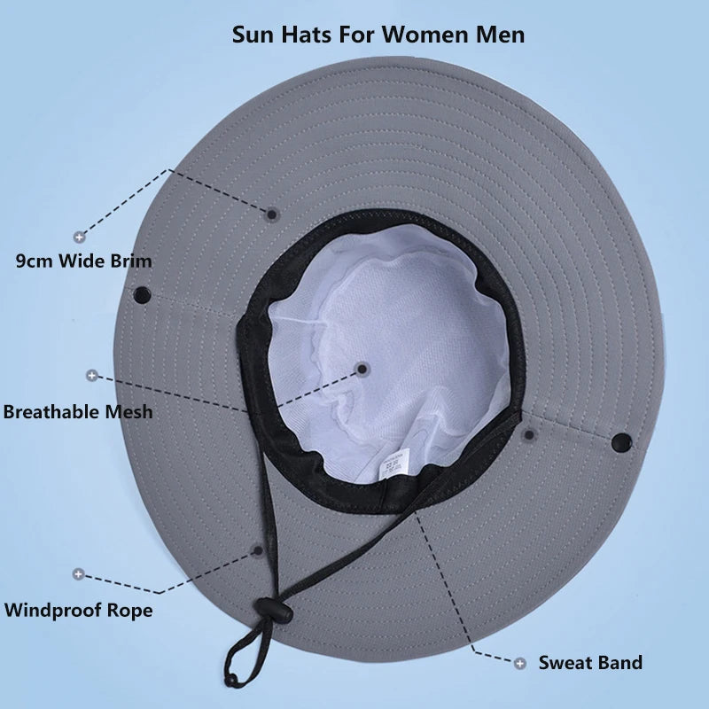 Summer UPF50+ Sun Hats For Women & Men Breathable Mesh Boonie Hat Foldable Hiking Fishing Hat