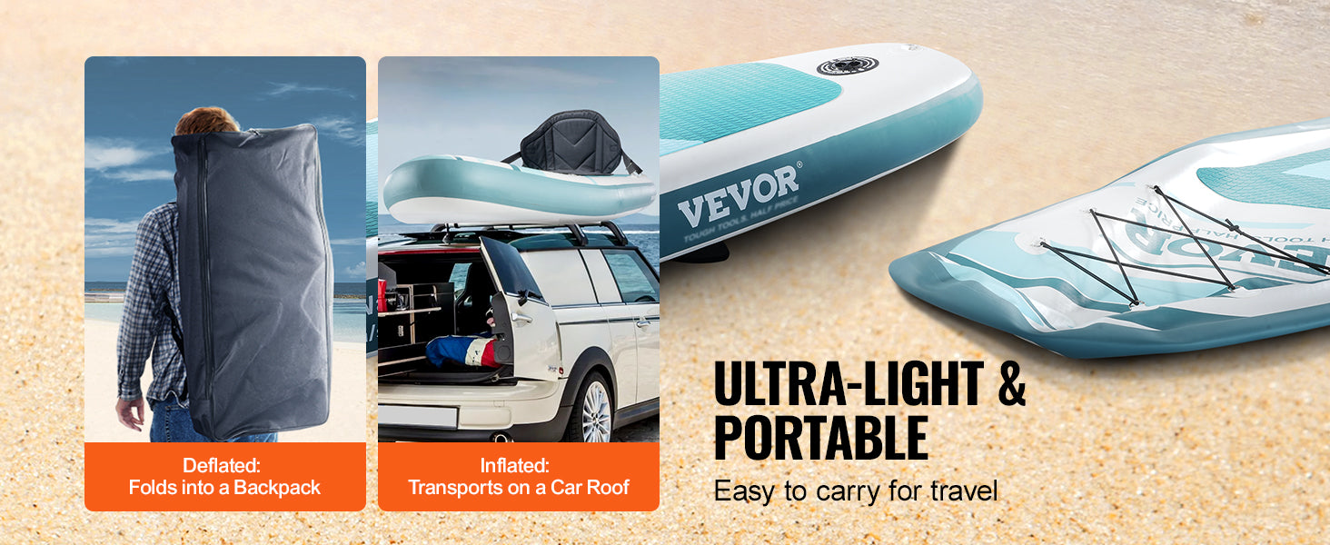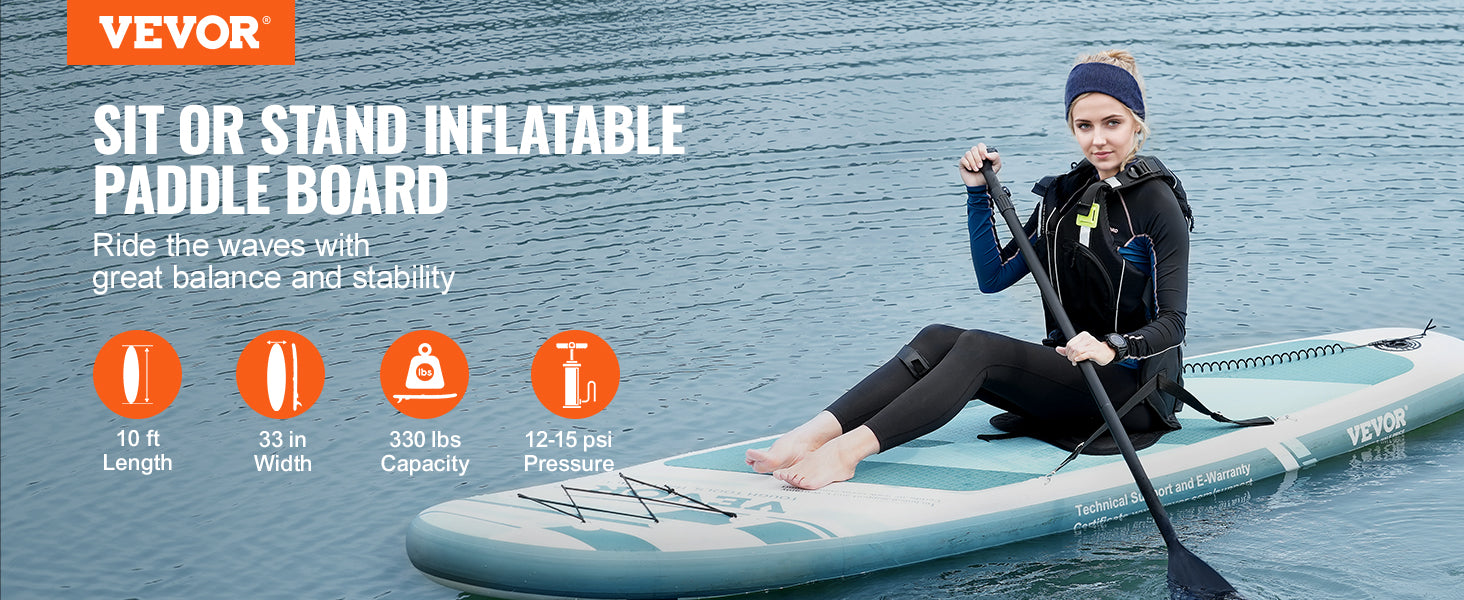 VEVOR Inflatable Stand Up Paddle Board 10' x 33" x 6" /10.6' x 33" x 6" Wide SUP Paddleboard with Removable Kayak Seat Paddle