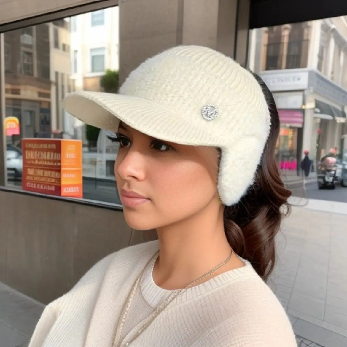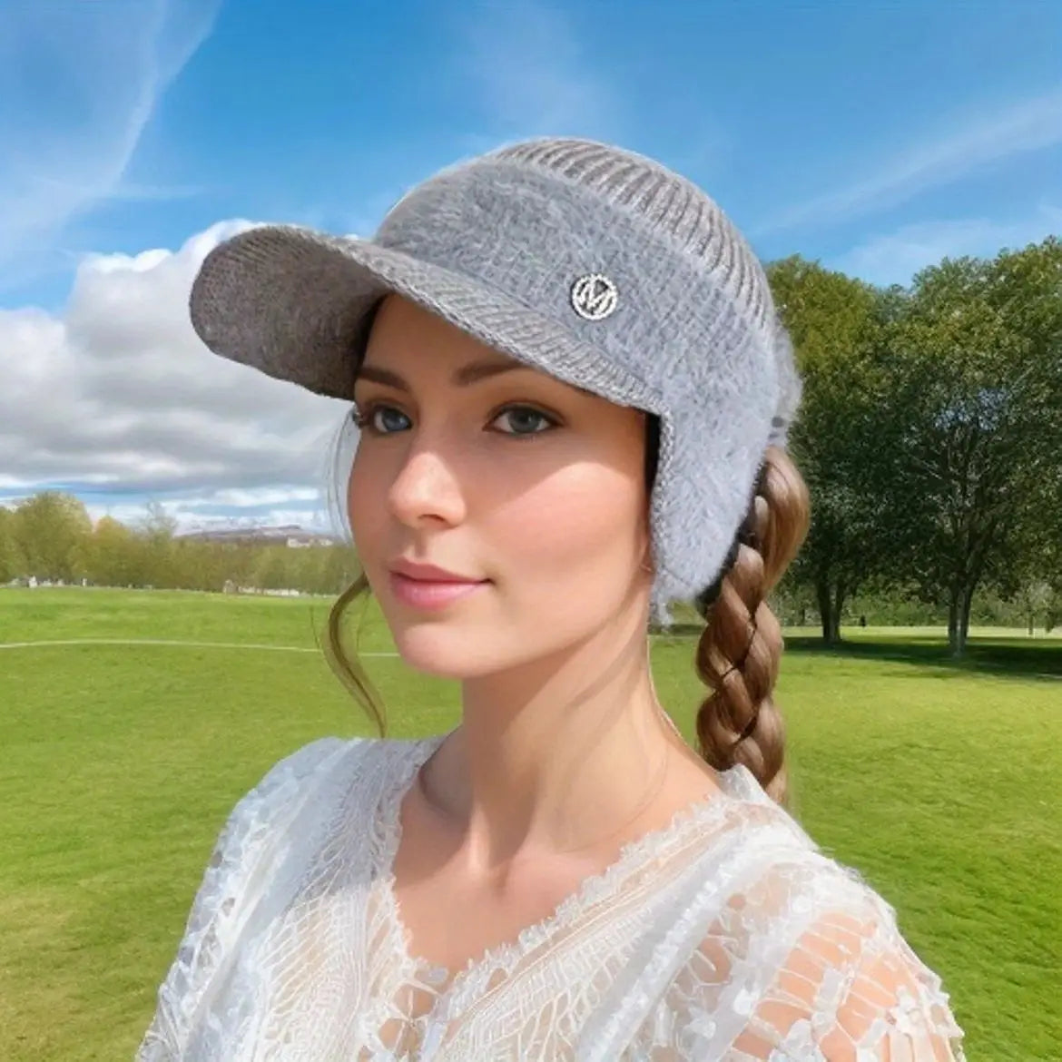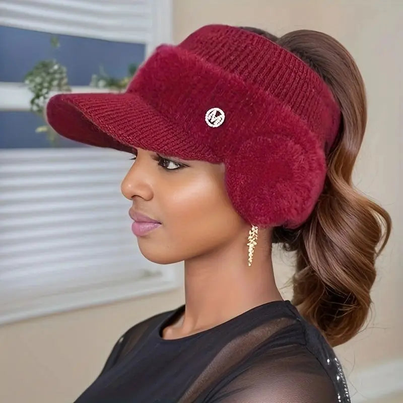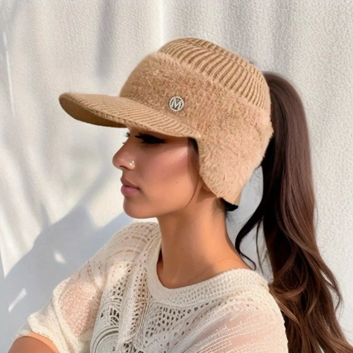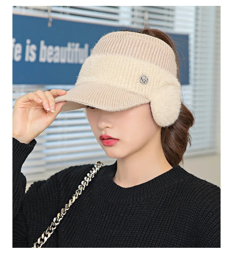 winter women's hat empty top wool ear protection cap leaky ponytail thick warm knit hat